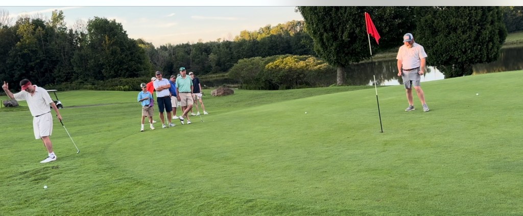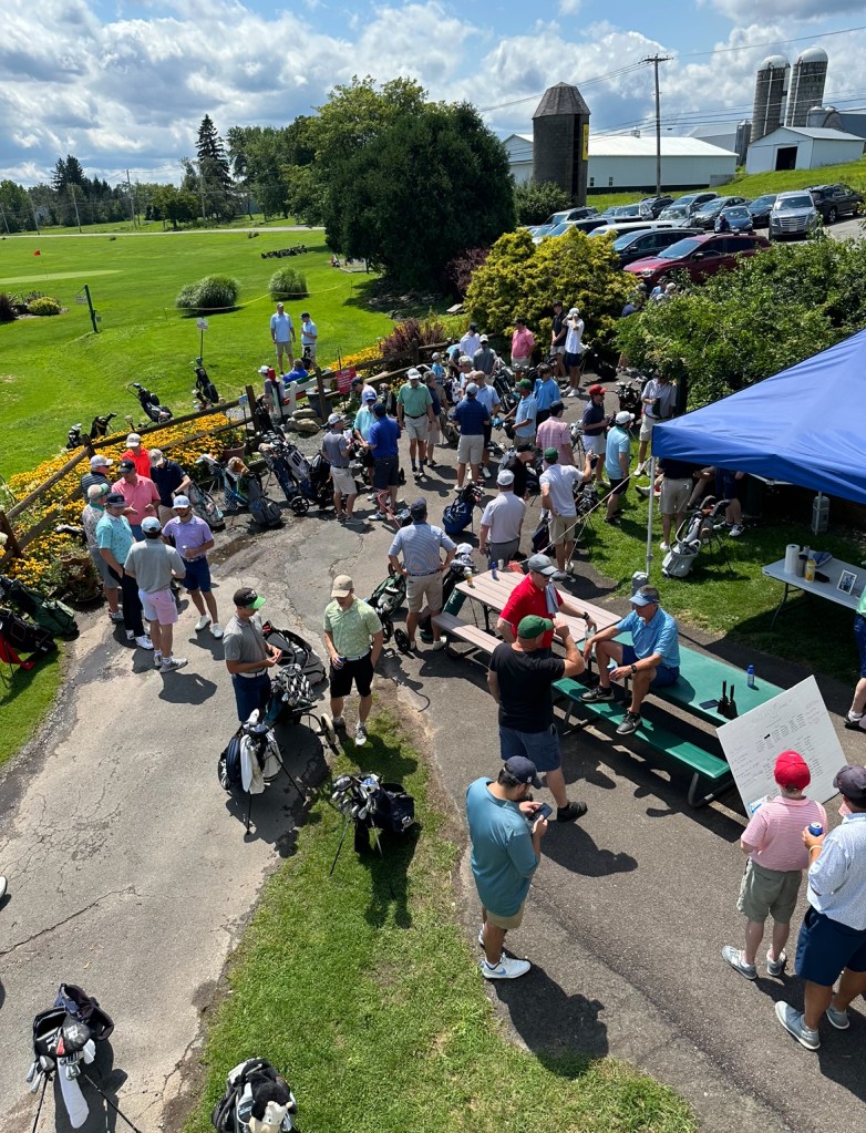 As golfers began to arrive at Red Maples, the excitement was thick enough to cut with a wedge. The defending champions were back, eyeing the elusive back-to-back title that only one team had ever claimed. Money was being handed in, sausages were thrown onto the grill, and golfers attacked the t-shirt table with fervor and determination.