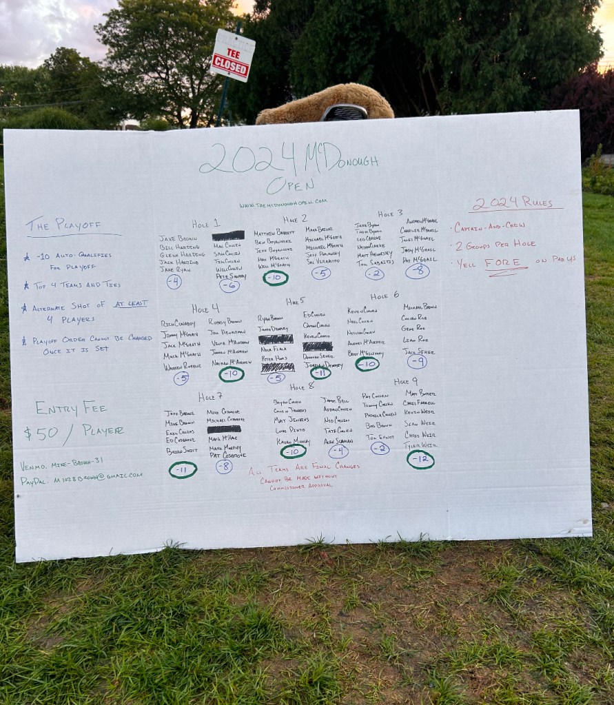 Kevin Cullen stood alone on the second green, basking in the golden light of a sun that seemed almost too poetic to be real, closing out a McDonough Open that, by all accounts, was destined to be a washout. For the second time in his life, Kevin was able to stake his claim as McDonough Open Champion, a title that ranks somewhere between winning the Masters and discovering fire. His team—comprising his father, Neil, his brother, Neilson, and brothers-in-law, Andres McAlister and Bert McGilivary—had just completed a masterclass in navigating a long, soggy battlefield that masqueraded as a golf course.